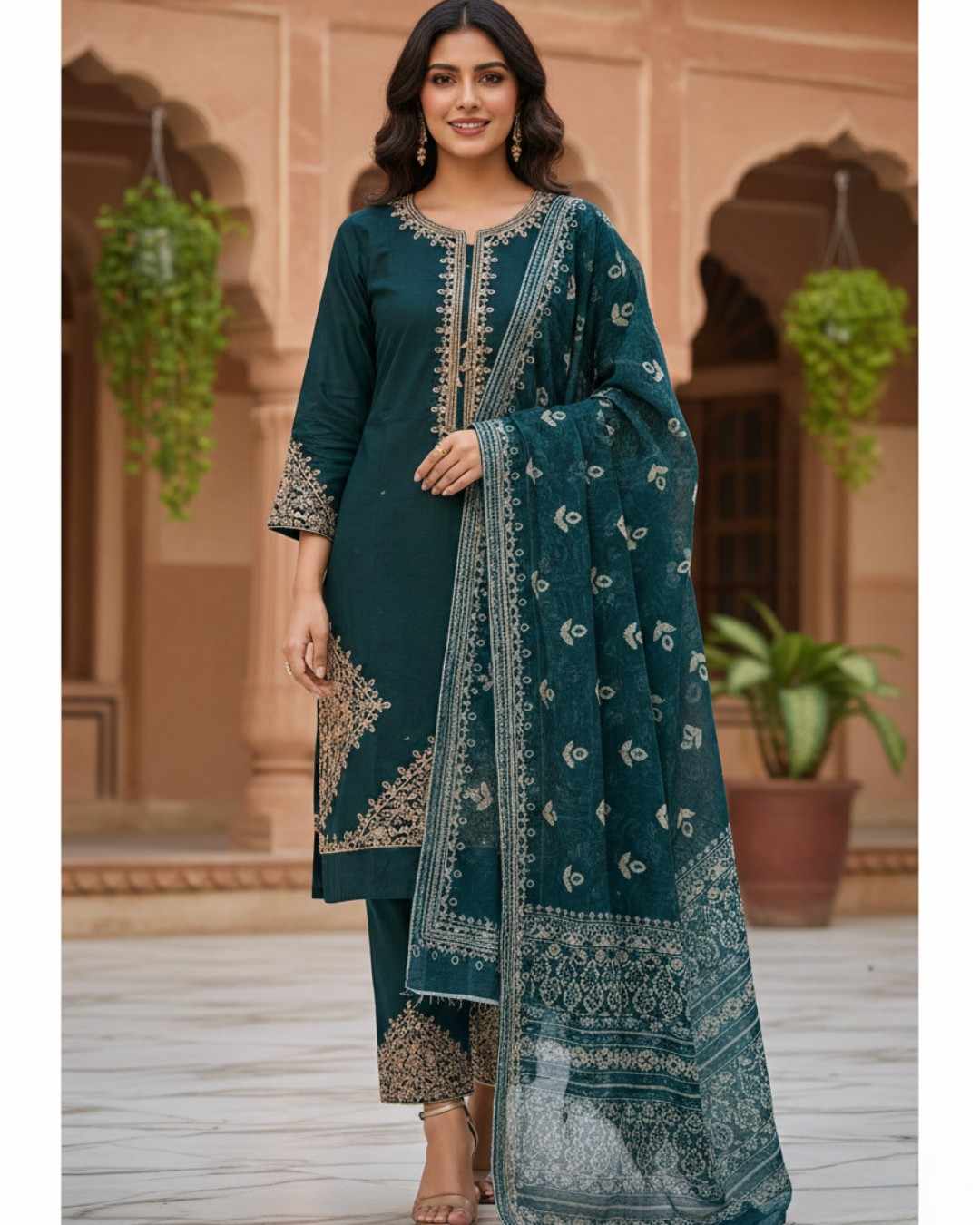Minimal embroidery on necklines, sleeves, and borders enhances the overall Cotton Dress Design without making it heavy.