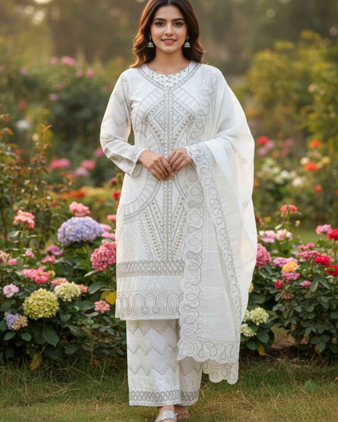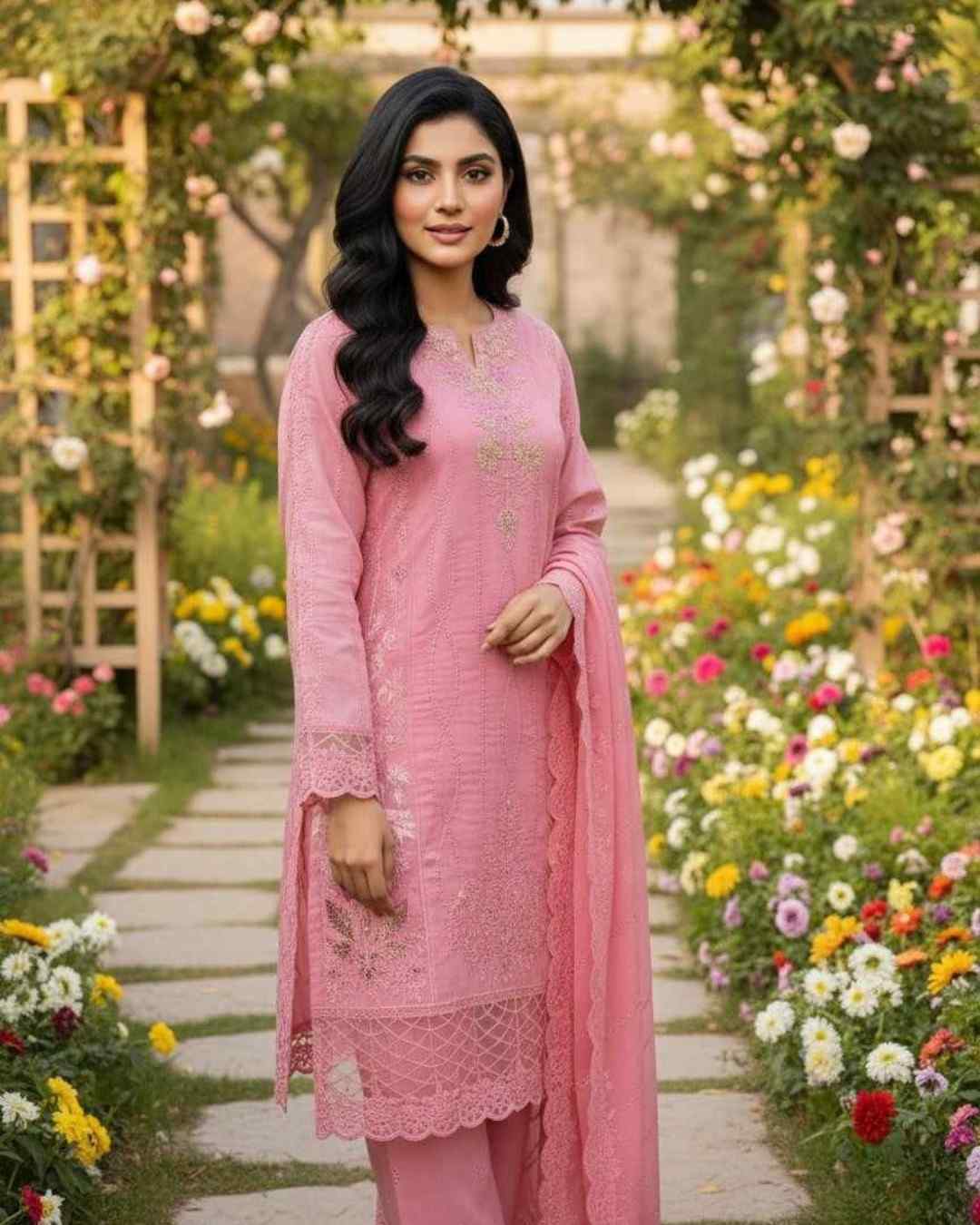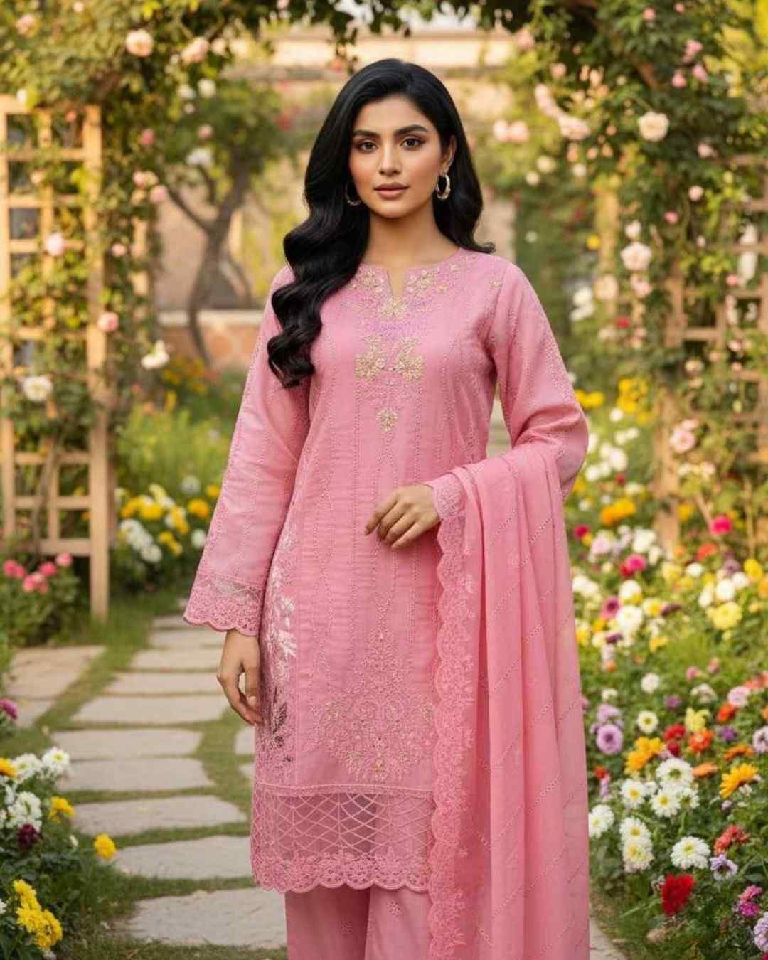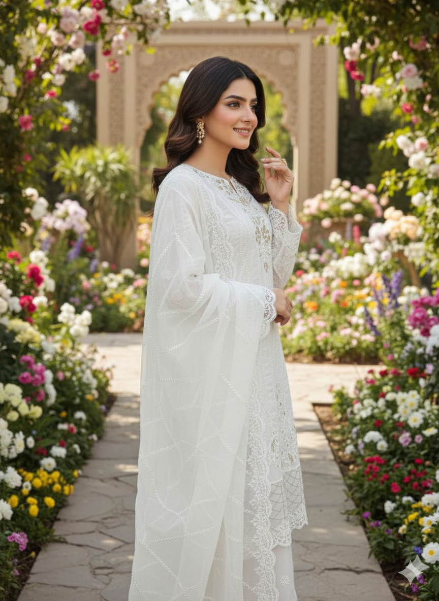 Slub lawn with embroidery is perfect for semi-formal events. The texture enhances the design, making it look premium.