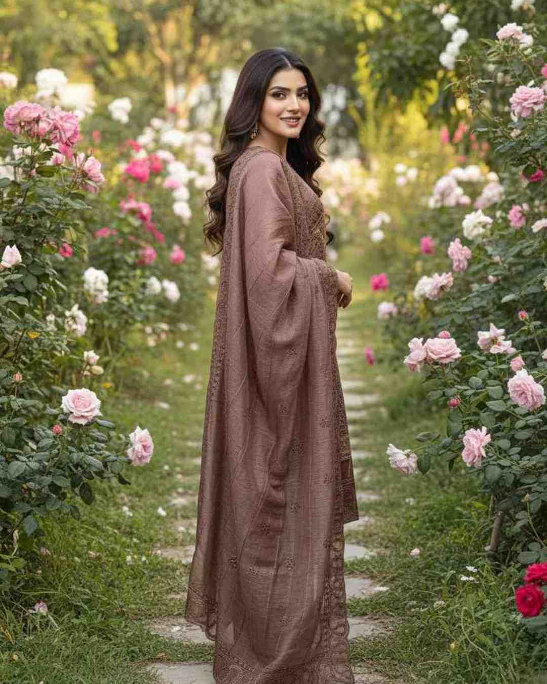 Slub khaddar is best for creating warm yet stylish winter suits. Pair it with wool shawls or printed dupattas for a complete look.