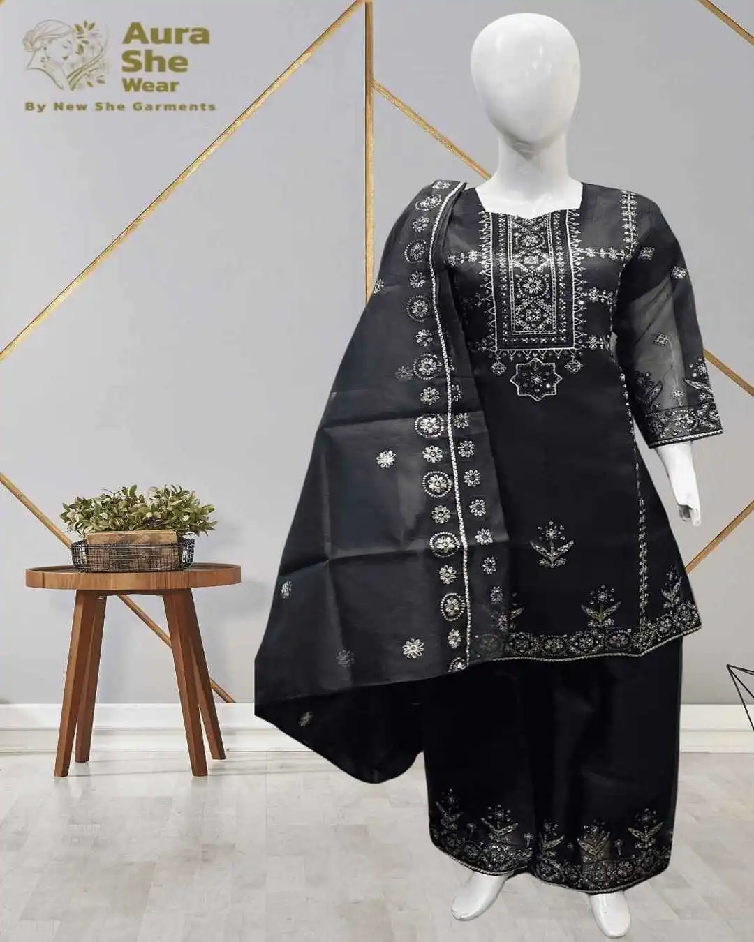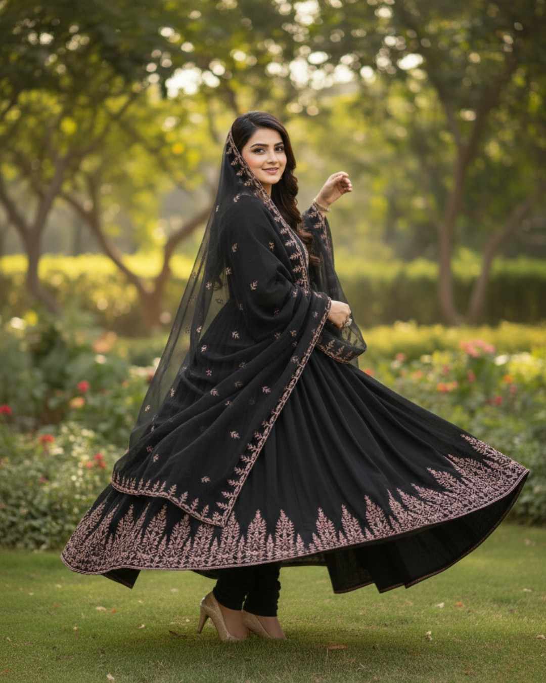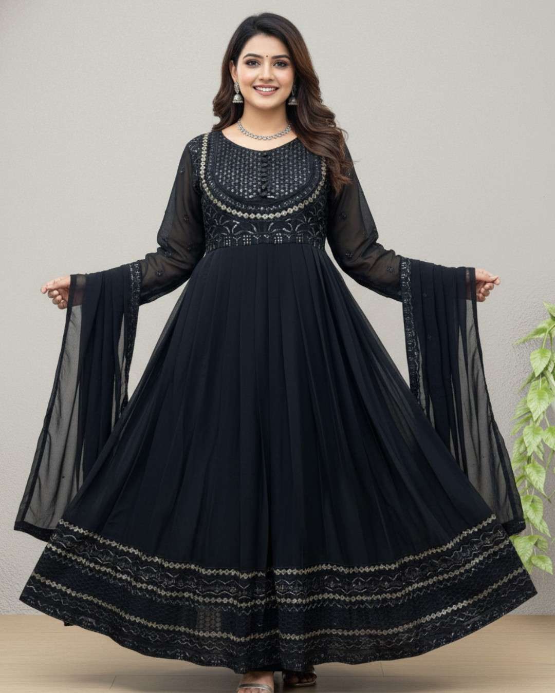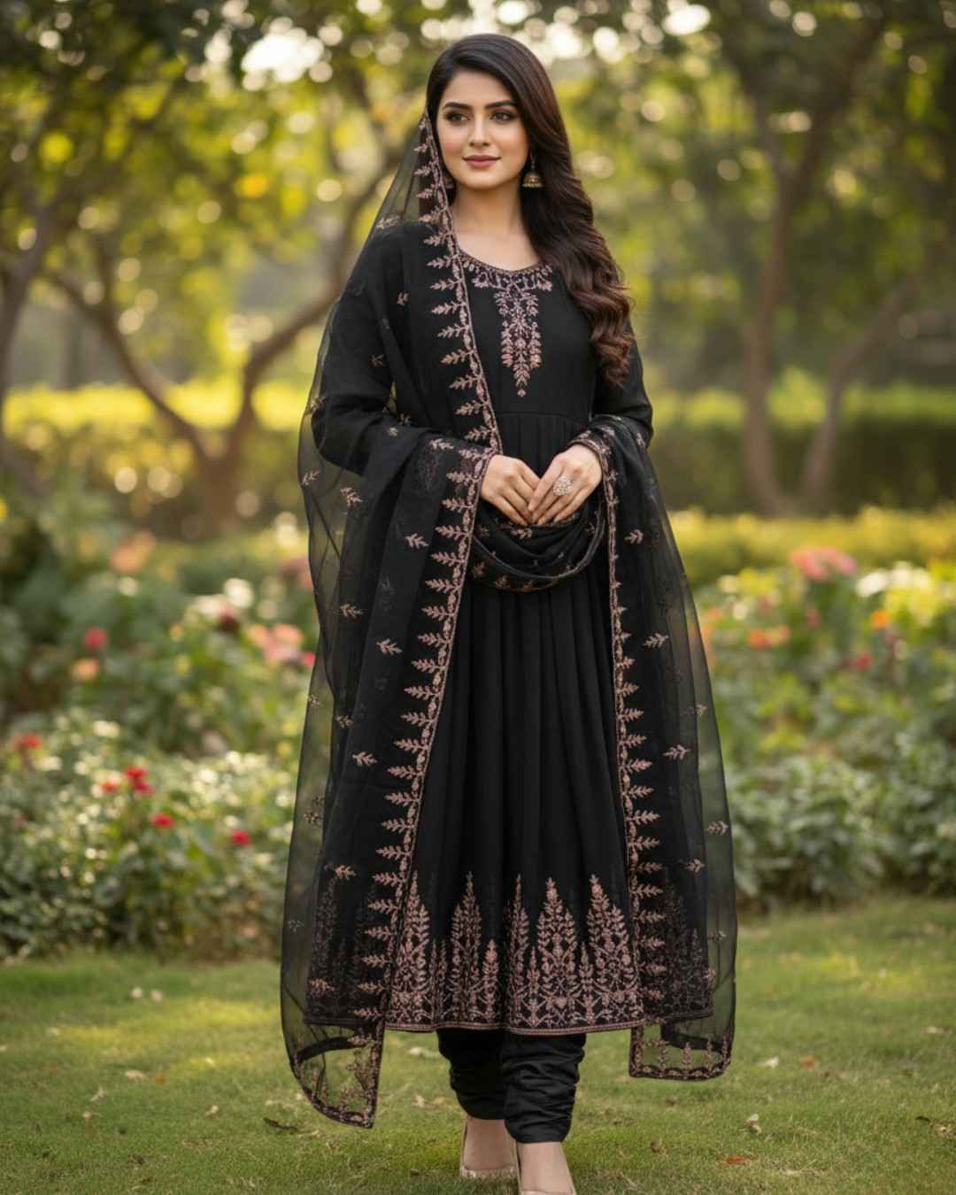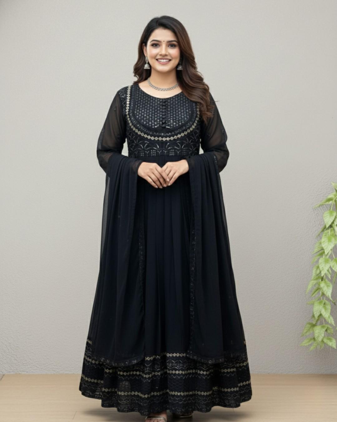 Black Embroidered Chiffon Maxi